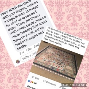 Keeping up with friends during the current pandemic has meant an increase in contact through social media, and sharing what we are doing in isolation, has uncovered some hidden talents on the craft scene. A recent photo on Facebook of an amazing quilt nearing completion, showed me the skills and dedication that a dear friend has invested in a stunningly difficult piece of needlework. The intricate patterns, the professional stitches, the blended colours and subjects, all made for a visually amazing article that she has been working on over many months. It was a joy to behold and the many congratulations posted, confirmed that she certainly is gifted and creative.
